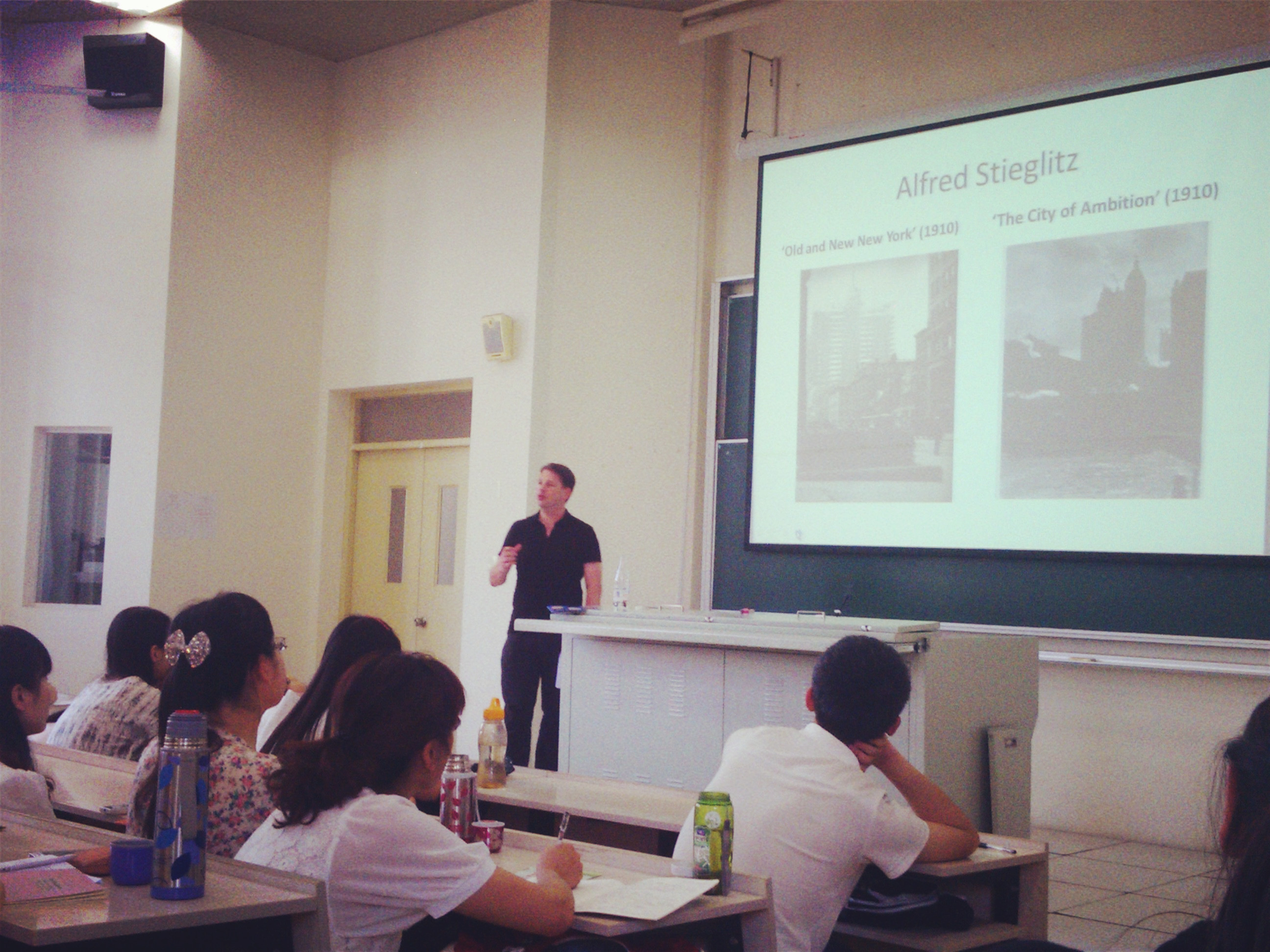 下午,莱斯特大学代表团赴松江校园。Martin Halliwell教授和Mark Rawlinson博士为英语学院学生举行题为《英美两国城市文化》的学术讲座。代表团分别与英国研究中心高健副主任、法学院谢晓河副院长进行了洽谈和交流。