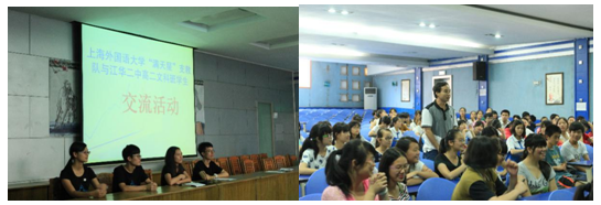 与江华二中高中部文科重点班的交流活动是今年的创新项目。在前期多次沟通努力下,满天星支教队有幸作为上海高校学生的代表与文科重点班的同学见面,向弟弟妹妹们介绍学习心得、高中和大学的生活经历等,并为同学们答疑。交流活动不仅在地域上拉近了上海与江华的距离,更重要的是在彼此心中架起沟通你我的桥梁。