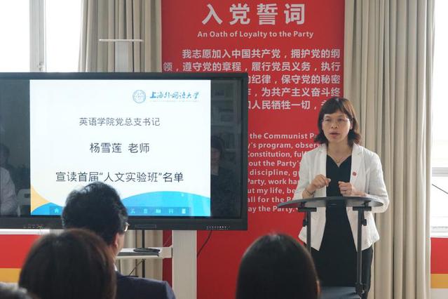 杨雪莲书记首先介绍了“人文实验班”从酝酿到正式开班的历程,并宣读了入选英语学院首期“人文实验班”同学的名单,向他们表示了祝贺。