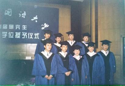 那时的我们确是勤勉上进的。束定芳老师的语义学课下,我们总有没完没了的问题围着老师问。束老师真的耐心啊,经常被我们缠着几十分钟才能“脱身”。毕业论文完成后,大家自发组织了十场“预答辩”,为每个人的论文把关。我们公开的那场模拟答辩,梅德明老师也来“旁听”的。我真正论文答辩时的主席是许余龙老师,一位让我又敬又爱又怕的老师。许老师平时话不多,为师也算不上凶,可随便哪篇语言学论文交由他审阅,他很快就会发现问题,而且通常是论文中最关键、作者最怕被问及的问题。于是,一个来小时的硕士论文答辩,导师正襟危坐,答委题题惊心,听众屏息凝神,那场景应该算得上很有仪式感了。