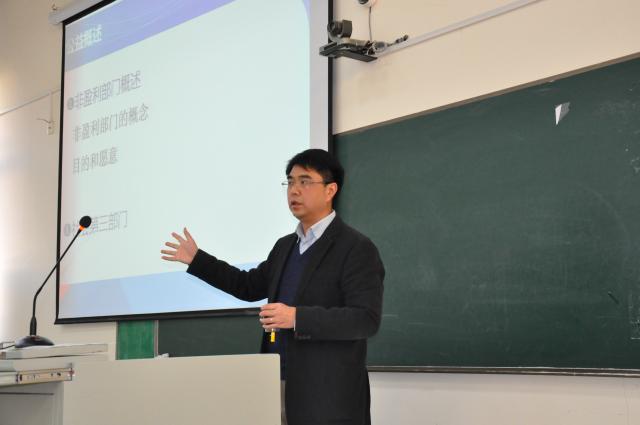 在公益概述方面,他向同学们介绍了何为非盈利部门,向大家讲述了国内外公益事业发展的轨迹,介绍国内相关的社会组织分类,并分析了当前国内公益事业的发展现状与前景。他表示当前中国在公益事业领域还有长足的发展潜力,更有大量的需求,这是一个正在兴起的行业。同时,目前各个公益部门缺少的便是高等人才,因而有兴趣的同学可以加入其中。孙元捷特别强调,想要成为一个优秀的公益事业工作者,最重要的是内心的驱动力,是否想要为他人带去幸福,也为自己带来内心的快乐。