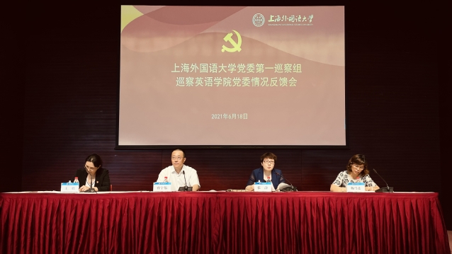 根据校党委统一部署,近日,上海外国语大学党委第一巡察组向英语学院党委反馈巡察情况。2021年6月16日,上海外国语大学党委第一巡察组组长孙宇伟向英语学院党委书记杨雪莲、院长王欣进行个别反馈,会上校党委副书记、纪委书记、巡察工作领导小组副组长钱玲传达校党委指示精神并开展全面从严治党工作谈话。2021年6月18日,孙宇伟代表上海外国语大学党委第一巡察组进行大会反馈。联系校领导张静传达校党委指示精神并对巡察整改工作提出要求。杨雪莲作表态发言。王欣主持会议。