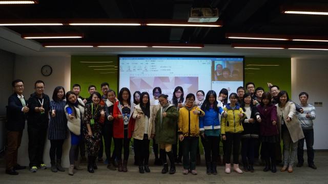 结束了蚂蚁创客空间之行后,同学们又来到了沪江公司的总部。首先,在工作人员的带领下,同学们参观了沪江网的工作环境。公司内部美观、温馨,员工们在各自的岗位上专注工作,偶尔也会看到两三人在休息区里认真讨论,整个工作氛围给人轻松愉悦的感觉。在随后进行了沪江运营讲座上,CCTalk的负责人向大家介绍了沪江的发展历程与运营理念,并与同学们展开热烈的互动交流。在讲座过程中,沪江网网校部副总裁孔薇着重介绍了沪江的网络公益支教活动--“互加计划-白云项目”的开展情况。自成立以来,沪江热心公益事业,关心贫困地区学生的学习情况,多年来通过“白云计划”等项目进行网络支教,用互联网的力量帮助贫困地区的孩子接触更多知识。沪江网首席教育官吴虹女士和四位来自沪江CC课堂的网络支教老师与同学们进行现场视频连线,并分享了他们的支教故事,同学们深受感动。通过视频连线,沪江网与我校信息技术中心、英语学院等部门和院系初步达成了在我校开展“互加计划-白云项目”的合作意向,沪江网首席教育官吴虹女士和信息技术中心直属党支部书记夏晴老师等在场师生见证了项目的启动并合影留念。