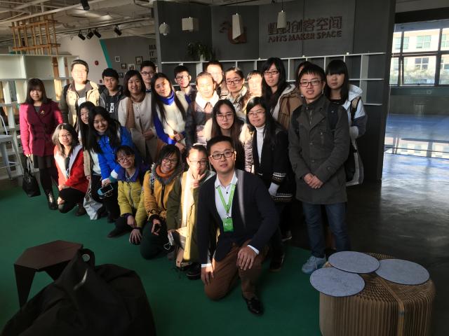 2015124日下午,英语学院与沪江网联手推出的“沪江--蚂蚁创客空间走访活动”如期进行。来自本科四个年级的同学们先后走访了位于浦东新区的张江蚂蚁创客空间和沪江公司总部。我校信息技术中心直属党支部书记夏晴老师、信息技术中心袁海明老师参加走访洽谈活动。英语学院2012级辅导员陈晓黎老师担任学生团队的带队老师。