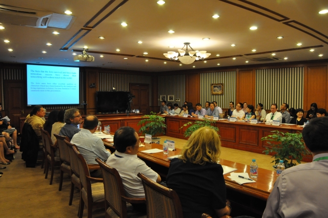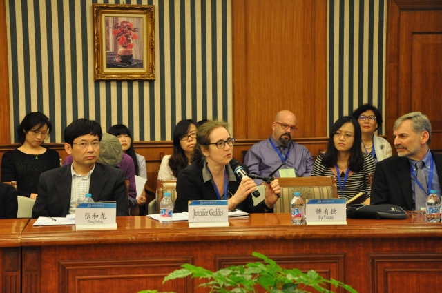 研讨会期间在我校召开期间,先后举行了6场大会发言,布兰迪斯大学西尔维娅·费希曼教授、山东大学傅有德教授、上海外国语大学乔国强教授、中国社科院钟志清教授、伊利诺斯大学尤金·阿夫路金、云南大学肖宪教授、弗吉尼亚大学詹妮弗·盖迪思教授、布兰迪斯大学阿里·奥芬甘顿教授、上海财经大学李峰教授、弗吉尼亚大学杰拉德·亚历山大教授等分别做了精彩发言,分别对犹太历史、文化、文学和社会等方面的问题进行探讨,内容涉及有关犹太人和上海的历史和文学文本,比较研究中国文化和犹太文化、犹太大屠杀和南京大屠杀、中国离散和犹太离散、辛格小说研究、维也纳犹太社区和马拉穆德小说研究等。
