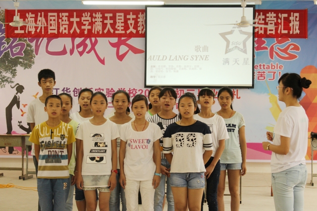 支教服务方面,以培养英语学习兴趣为主题的教学是“满天星”的特色。今年队员充分总结往年经验,在课程设置方面既发挥了特色又有所创新。今年的支教以英语夏令营的方式展开,适当减少纯知识的输入,增加趣味课程,并辅以基础的英语教学,更好地展现出上外学子的英语专业优势。来自全校不同专业的队员从八个不同角度向当地孩子多方位介绍英语国家的人文风物,以拓展孩子们的英语视界,提高学习热情,完善学习方法。本次英语夏令营共开设八门课程:中英文化习俗比较、语音艺术、英语歌曲入门、趣味科学、趣味英语动画、英语国家概况、趣谈英语以及趣味英语辩论。此外,还开设特色活动课及英语角,播放《Zootopia》等经典迪斯尼动画片,为孩子们排练短剧、诗歌朗诵以及合唱,以多种寓教于乐的方式帮助孩子们提高英语语言应用能力。