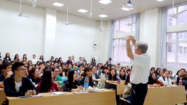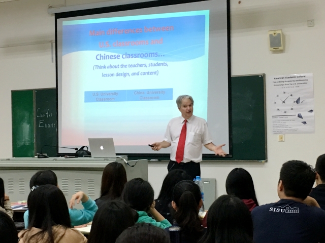 10月26日下午,英语学院特邀拥有16年在中国大学任教经历的外国专家Curtis Evans带来讲座American Academic Culture: Tips on Being Accepted by and Receiving Scholarships from Top U.S. Universities,深度解读英美名校申请的方法。讲座吸引了百余名上外学子,现场气氛火爆热烈。