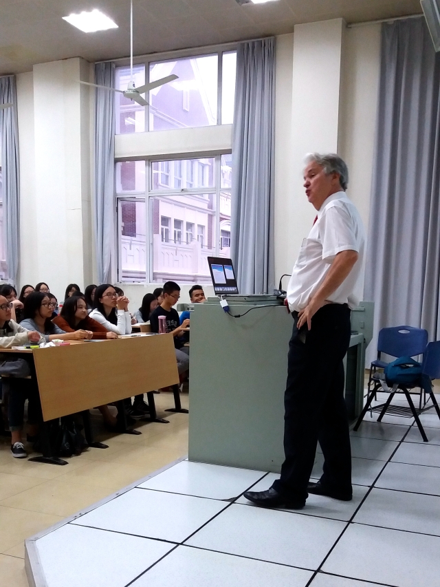 主讲人Curtis Evans为美国哥伦比亚大学历史学学士、美国哈佛大学历史学硕士,持英国剑桥大学教师证书,担任雅思考试考官,曾经帮助许多中国学生申请英、美顶尖学府,现为英语学院外教。在日常工作中,他发现我校学生在申请海外学校时在目标学校的选择、申请材料的准备等各方面存在诸多误区,于是主动提出开设本场讲座,以帮助更多上外学自进入成功申请海外名校。