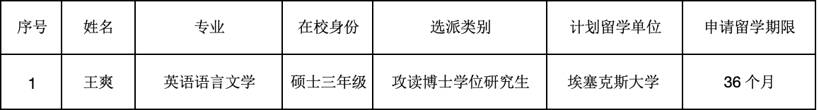 根据国家留学基金委“2022年国家建设高水平大学公派研究生项目”选派办法,我院积极组织开展了申报相关工作。经过自愿报名、导师推荐、学院审核等环节,我院拟推荐王爽1人申报该项目,现将推选结果予以公示。