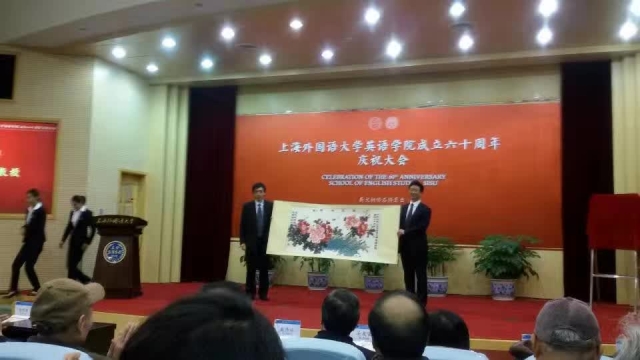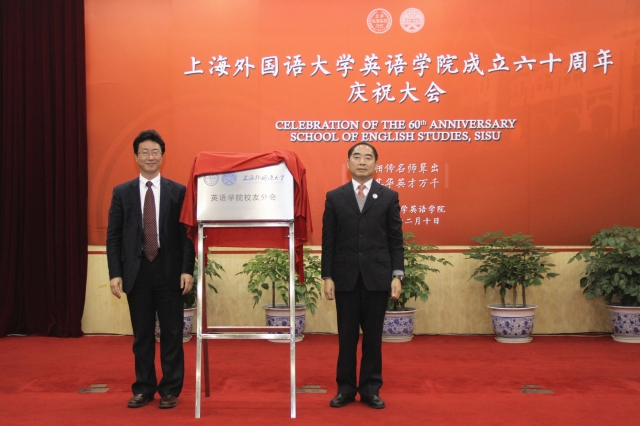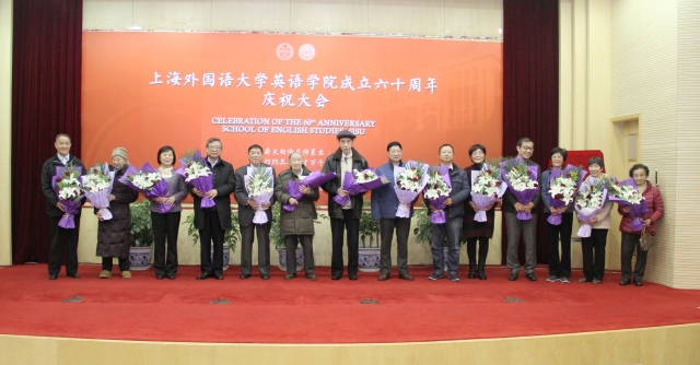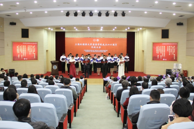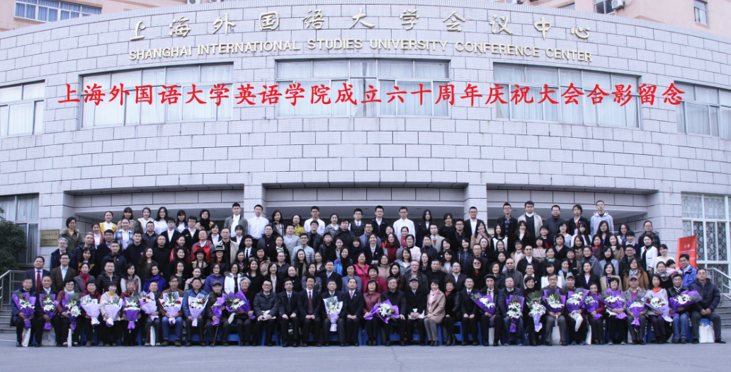 12月10日,伴随着喜庆欢快的音乐,上海外国语大学虹口校区内彩旗舞动、喷泉盛放,英语学院成立六十周年庆祝大会在第一报告厅隆重举行。上海外国语大学副校长冯庆华教授,上海外国语大学前党委书记、校长,英语系前系主任戴炜栋教授,上海外国语大学前党委书记、英语系前党总支书记吴友富教授,北京外国语大学英语学院院长张剑教授,以及来自校机关部处领导,兄弟院系党政领导,英语学院退休教师代表及全国各地校友等200余人汇聚母校,共度庆祝英语学院六十华诞。