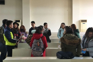 2016年12月23日,英语学院在松江校区5121教室为将于2017年春季学期赴境外学习的学生组织了行前培训会。英语学院副院长王欣、辅导员熊颖哲、外事秘书黄钰霞参加了会议,同时还邀请了从英国皇家霍洛威学院和莱斯特大学交流返校的李雪莹和宋可欣同学分享留学经验与体会。