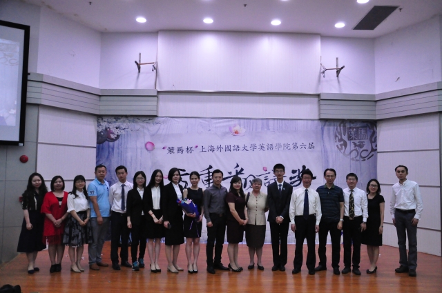 5月26日晚六点,“策马杯”上海外国语大学英语学院第六届“方重翻译奖”口译大赛暨颁奖典礼在我校松江校区图文东厅隆重举行。前中国外交部翻译室主任、原驻外大使徐亚男女士,国际会议资深同传译员曹建新教授,策马集团总裁助理、资深译员周敬棋先生,策马翻译上海分公司总经理张丽女士等嘉宾应邀出席观摩。我校招生办公室主任王斌华,高级翻译学院党总支书记赵美娟,海外合作学院院长、出国培训部主任汪小玲,高级翻译学院副院长吴刚,校党委宣传部副部长陈晓黎,国际教育学院副院长聂薇出席颁奖典礼。英语学院院长査明建、党总支书记孙俭、副院长王欣、党总支副书记曹原、翻译系主任肖维青,以及英语学院、国际教育学院多位教师代表出席了颁奖典礼。此外,我校国际文化交流学院的留学生代表,以及来自上海市三新学校、松江二中和朱家角中学的师生代表也参加了此次典礼。