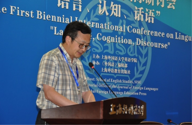 6月18日上午,在张继东教授和赵冠芳副教授的主持下,主旨发言继续进行。澳大利亚悉尼大学国际知名语用学家James Martin教授以“我们赖以感知的隐喻——语层间的张力”为题,探讨了系统功能语言学对于人际词汇隐喻解读的意义。上海外国语大学的外籍教授Jeroen van de Weijer从音系学的角度对语言获得是先天还是后天的进行了探讨。南京师范大学的张辉教授介绍了认知语言学的崭新分支——批评认知语言学,它整合了认知语言学和批评话语分析,而具体的分析则以批评隐喻分析、概念整合理论和话语空间理论为基础。之后,张辉教授通过对美国情报机构的七份报告的分析,探讨了该理论框架的实际运用。复旦大学的熊学亮教授从语用习惯的角度对英汉语中的动结式进行了对比分析。同济大学的张德禄教授通过对多模态话语建构中语法、词汇和语篇的讨论,指出多模态语篇的分析应关照在实现该语篇过程中不同模态所起的作用。最后,杭州师范大学的施旭教授以文化话语研究的视角分析了中国军事战略的性质,得出了该战略的和平性、透明性和原则性,进而建议中美两国应就国际治理、普世价值、透明化以及国家军事战略的沟通规则展开对话。每位专家的主旨发言之后都进行了问答互动。