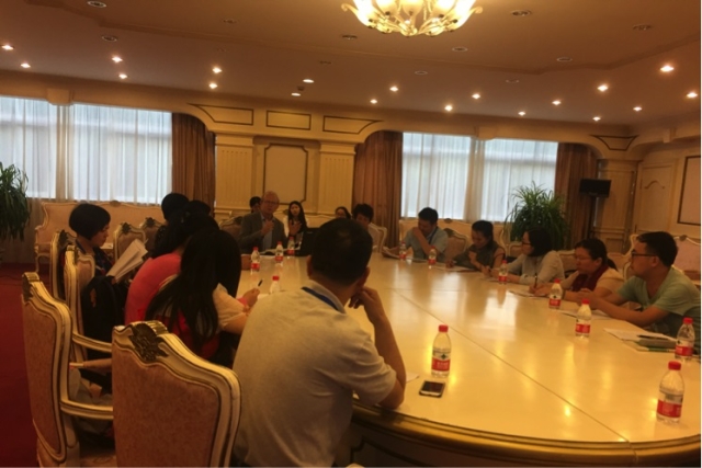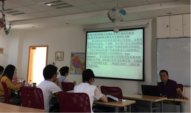 6月17日晚,由何春燕副教授主持的著名语言学家Jef Verschuren教授语言学工作坊活动在会议中心法国厅如期进行。Jef Verschuren教授围绕“人文科学与公共领域——语用学视角”主题,结合一则CNN访谈的鲜活话语,对全球化公共领域变化的性质、语用学对于公共领域社会和政治意义解读的贡献以及语用解读的指导原则、分析方法和步骤进行了探讨,并与在场的听众进行了有益的互动。