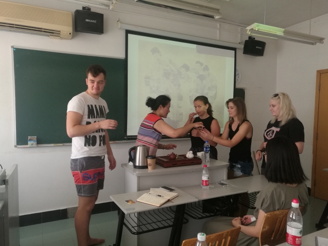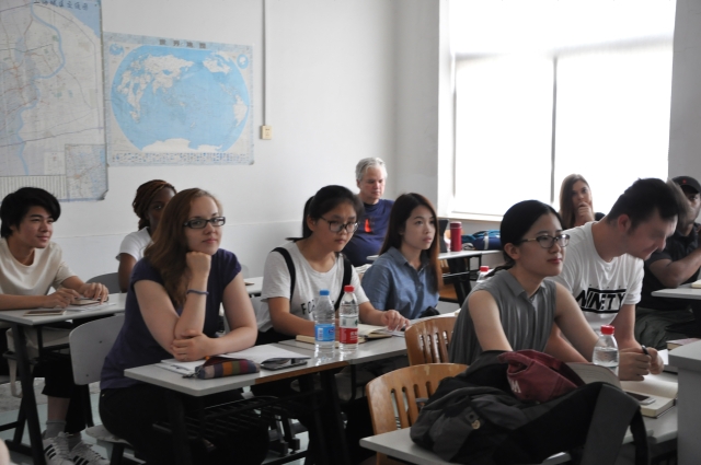 中国文化英文课程暑期项目以15场专题英文讲座为主,还包括太极、剪纸等中国文化体验课程以及短期出游的文化考察活动。15场专题讲座从多个方面角度诠释讲解中国文化,既有哲学、宗教、书法、戏剧、中医、音乐等中国传统文化等内容,又有中国戏曲、茶文化、中国珠宝设计以及当下一带一路进程等专题讲座。 既有对中国文化宏观上的概述和讲解介绍,又有对中国社会文化典型现象的探讨和分析。整个项目的15场讲座既独立成篇,又相互联系,构成了一个有机的整体,理论阐述与现象分析相结合,宏微互参,帮助同学们了解中国文化的渊源、承继、嬗变及其在现实生活、风俗习惯等层面的具体体现。授课教师不仅包括英语学院的专任教师,还邀请了来自美国蒙大拿大学的曹振教授、同济大学的吴赟教授、复旦大学的陈靓教授进行授课,学院外籍教师Curtis Evans也为本次暑期项目带来了两场讲座,受到了同学们的欢迎与好评。
