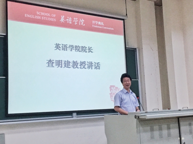 査院长首先以“学以聚之,问以辩之”欢迎新生同学加入上外研究生学术共同体。今年适逢我校研究生教育两级管理实施,查院长对新生们提出了殷切期盼,希望英语学院的研究生们“做一个有崇高人生立意的人,做一个有思想、有情怀的人”,以前辈学者为楷模,成为本科生的榜样,体现出学问的魅力、思想的魅力和知识人人格的魅力。