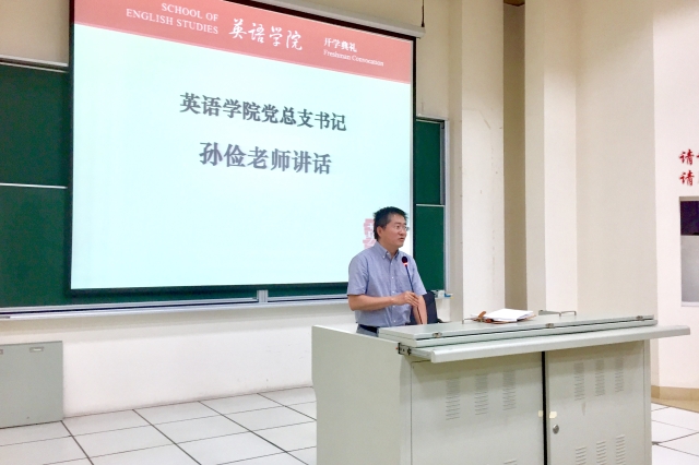 研究生开学典礼上首先播放了英语学院宣传片,通过光与影让新生同学在第一天真切感受到学院深厚的人文底蕴与人文情怀。副院长孙会军从“历史悠久、大师云集、影响力强”等几方面向新生介绍学院的历史传统和知名教授学者。党总支书记孙俭向全体新生致欢迎词,并对新生提出六点建议与要求:一是要以德为先,德才兼备,不仅要提升知识,更要追求学术、提高人生境界;二是要严于律己,遵守学校规章制度和校纪校规;三是提升自我平衡与管理的能力,处理好学习、工作、个人的事务;四是建立本、研联动机制,整合资源,发挥优势,传承和发扬学院人文传统;五是要提早做职业生涯规划;六是要加强与导师、辅导员的交流。