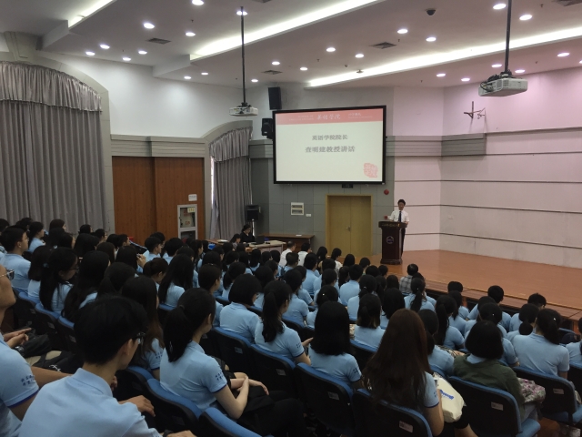 查院长指出,英语专业不是仅仅学英语语言技能的专业,而是应通过英语来学习人文通识知识的专业。学院从2010年开始大幅度推进“人文化改革”,从专业理念、人才培养到课程设置、课堂教学,以人文通识教育为中心、以全人教育为宗旨,努力培养人文知识结构扎实、富有人文情怀的跨文化高素质人才,让我们的学生具有可持续发展的潜力和学习能力。我们的学生该如何读大学?查院长希望同学们尽快适应大学生活,学习模式由被动式学习转向自主性学习,学习长大成人、善解人意,与别人多沟通交流。最关键的,“是要树立崇高的人生价值观和人生理想”。查院长提到,大学教育的核心是人文精神,就是自由精神、独立精神、人文精神、科学精神、创新精神和批判精神。我们的学生在大学期间,要通过专业课、人文课程、广泛的阅读来培养自己的想象能力、创造能力、表达能力、观察能力、思辨能力、分析判断能力、逻辑推理能力等,从而完善知识结构,修炼个人品行,砥砺人文品格。