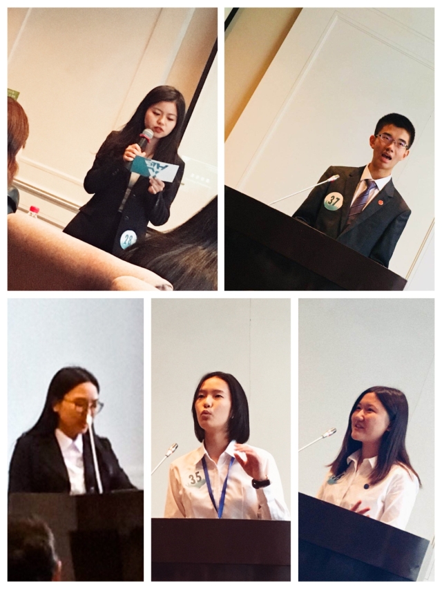“从得知自己要参加比赛和到比赛开始前的那一段时间,我都是在忐忑不安中度过的,甚至在晚上做梦时都会梦到比赛抽题时的场景,我开始担心到了比赛的那天会不会因为过于紧张而昏厥在赛场上。但到了真正比赛的时候,我才发现一切的担忧都是多余的。我开始享受在辩题公布后的二十分钟内与队友们脑洞大开的紧张与兴奋感,在发言时脸颊微微发热、优雅(傲娇)地拒绝对手质询的感觉,也体会到了即兴演讲的乐趣。最开心的是,我认识了许多有趣并且厉害的人。还有什么比和知性大方聪慧性感的同学们一起培训一起参加比赛更加幸福的事吗!”
