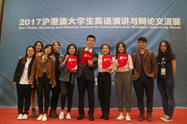 2017年10月14日-15日,应复旦大学之邀,英语学院组织来自英语学院与卓越学院多语种专业的8位同学,由顾秋蓓、汤敏、肖一之三位老师担任指导教师,由汤敏和肖一之两位老师带队,参加了在复旦大学举行的首届沪港澳大学生演讲与辩论交流赛。