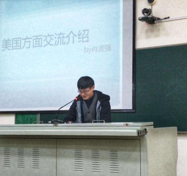 2014级的肖波强同学和时洁楠同学是2016年9月-12月分别赴美国蒙大拿大学和英国莱斯特大学的两位学生,他们从各自的经验出发,给即将参加2018年春季出国交流项目的学弟学妹们从学习、生活、住宿等各个方面做了经验分享,特别强调学生要充分利用国外图书馆的资源,为自己回国完成毕业论文做好准备,同时也告诫学生出门在外一定要结伴出行,注意个人安全,希望学弟学妹们珍惜在国外的交流机会,多与当地的学生老师交流,不断的提高自我。