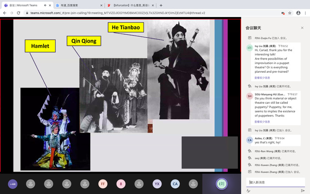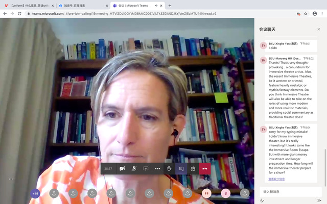 8月25日的交流内容以跨文化沟通为主题,以戏剧为核心,埃克塞特大学戏剧专业的卡里亚德·阿瑟尔斯(Cariad Astles),简·米林(Jane Milling)以及清华大学的刘昊老师分别针对中西方偶戏剧场的传统与创新、沉浸式戏剧在中英两国的实践情况以及莎士比亚戏剧在中文语境中的改编进行演讲,对中西方戏剧的沟通方式、内容与目的进行了简单对比。我院同学对于沉浸式戏剧进行了提问,在关于沉浸式戏剧的排练周期以及其在中国本土的融合问题上和老师们进行了讨论。