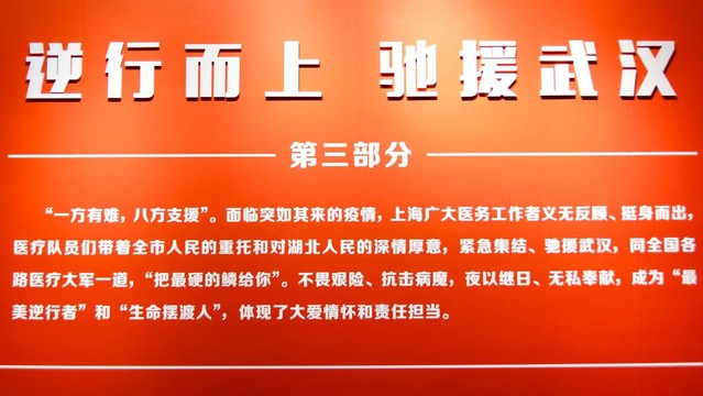 在“逆行而上,驰援武汉”篇章,我们感受到了上海广大医务工作者义无反顾、挺身而出的奉献精神。面对突如其来的疫情,医疗队员们不畏艰险、夜以继日,“把最硬的鳞给你”,无怨无悔奔赴武汉。在家书墙上,我们既看到了来自小家,对家人们千万叮咛的小我;又看到了为了祖国,面对危难毫不退缩的大我。一封封细细叮咛的家书,背后承载着沉甸甸的情感和责任,各位积极分子站在这面墙前细细品读,深受感动,对医务工作者们倍感崇敬。