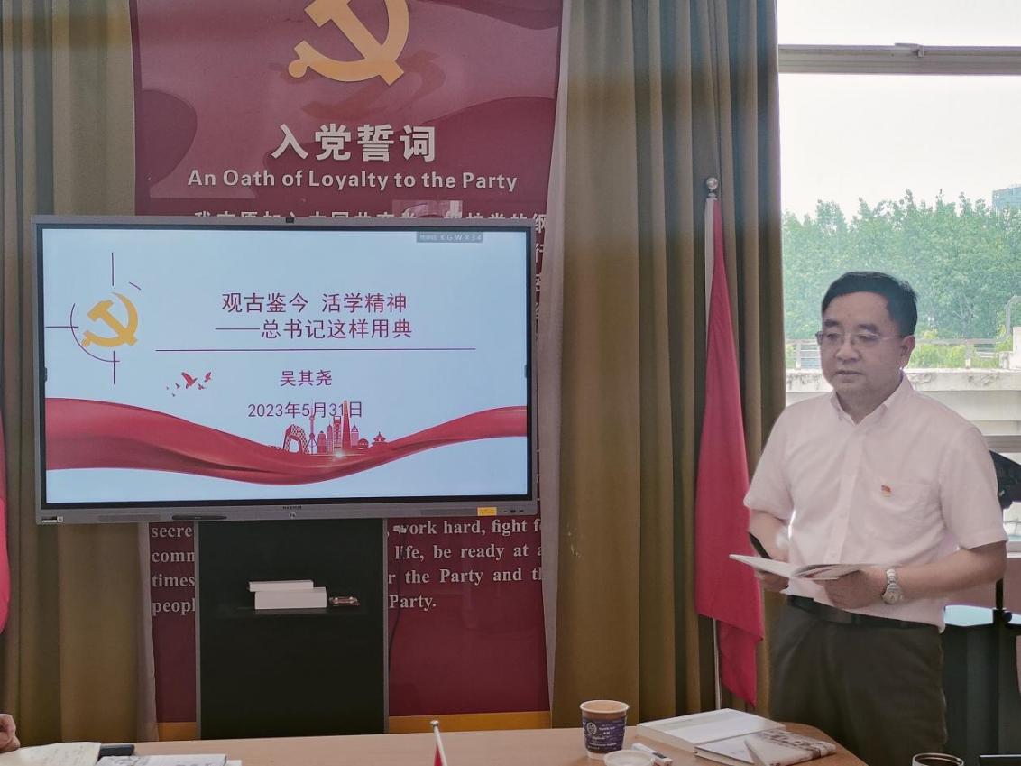 2023年5月31日,上海外国语大学英语学院吴其尧教授在为英语学院主题教育班子成员读书班开设的“观古鉴今 活学精神——总书记这样用典”辅导报告中强调。