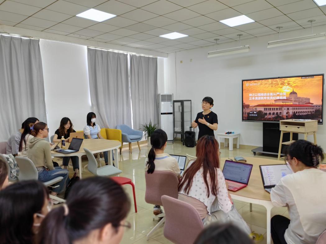 5月30日,学院党委书记杨雪莲为教工第二支部党员、学院管理团队讲授题为《学习把握“六个必须坚持” 推动学院工作新发展》的专题党课。杨老师讲解了习近平新时代中国特色社会主义思想“六个必须坚持”的内容,剖析了核心要义,解读了其与马克思主义一脉相承又与时俱进的立场、观点和方法。“六个必须坚持”是一个既彼此独立又相互贯通的有机整体,深刻揭示了习近平新时代中国特色社会主义思想的理论品格和鲜明特质,希望行政教辅团队坚持以学院师生为中心立足本职结合工作实际,坚持好、运用好贯穿其中的立场观点方法,对接学校学院发展战略和人才培养目标,凝心聚力推进学院各方面工作再上新台阶。