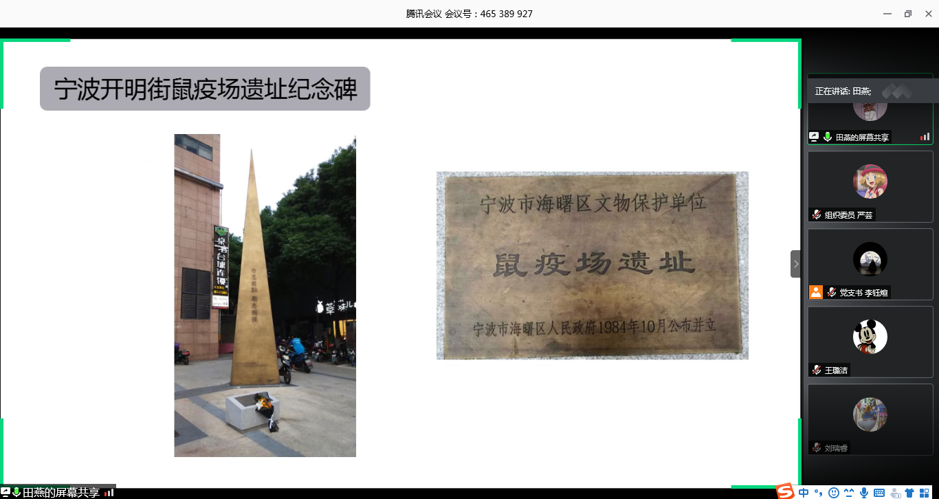 举国战“疫”的时代背景让支部党员田燕来到了宁波开明街鼠疫灾难陈列馆,了解抗战时期鼠疫肆虐经过、封锁疫区、防控救扶的全过程。竖立在宁波开明街的鼠疫场遗址纪念碑无时无刻不在提醒着大家,勿忘国耻,励志图强。