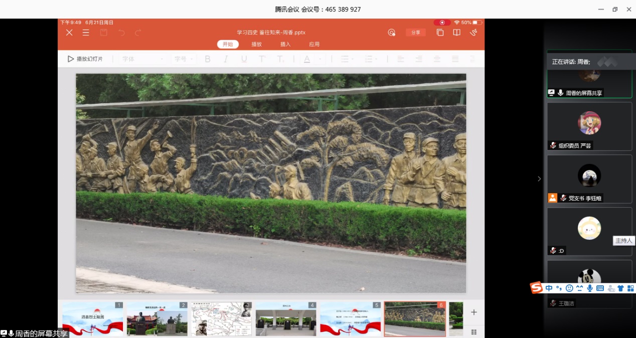 党支部书记李钰煊强调,理想信念是共产党人的精神动力和力量源泉。中国共产党人之所以能战胜难以想象的困难和挑战,表现出超乎想象的强健的生命力,就是因为有信仰力量的支撑。学习“四史”的关键,在于从“四史”教育中汲取信仰之力,把稳思想之舵。