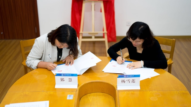410日下午,上海外国语大学英语学院与上海卓赞教育科技有限公司(哒哒英语)实习基地签约仪式在松江校区举行,“哒哒英语”首席执行官郅慧与英语学院党总支书记杨雪莲签约并为实习基地揭牌。“哒哒英语”合伙人及教学副总裁沈晓凤、人事总监王美瑶、招聘经理陆婧艺以及英语学院党总支副书记曹原、辅导员宋亮参加了签约仪式,双方就教育理念和合作方式进行了深入洽谈。