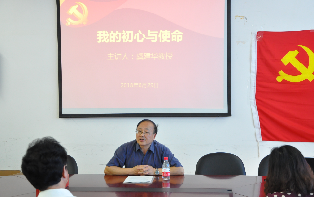 6月29日下午,为纪念建党97周年,进一步深入开展主题实践教育活动,英语学院党总支邀请我校“全国优秀教师”虞建华教授以“我的初心与使命”为主题,为学院的全体党员教师们上了一堂生动的党课。