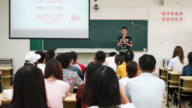 为庆祝中华人民共和国成立69周年,进一步深入学习贯彻习近平总书记系列重要讲话精神,加强对入党积极分子的培养和管理,2018年9月29日,英语学院分党校在5124教室举行了本学期第一场专题讲座。讲座邀请了英语学院四位退伍的学生党员,请他们与大家分享自己在军营的感悟与收获。党总支副书记曹原,兼职党建组织员李秀秀,兼职辅导员刘文锦以及英语学院全体入党积极分子参加了本次讲座。讲座由刘文锦主持。