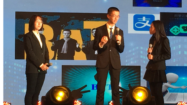 本次活动分为五个环节。第一轮要求参赛选手在比赛平台上阅读一篇英文文章后撰写总结;第二轮以上传指定文章录音的方式进行;第三轮为现场比赛,选手从视译、听译和视频演讲三个方面进行比拼。经过激烈角逐,我校两组选手均顺利晋级。11月24日上午,大学组的6支团队进行第四轮比赛。第五轮的现场总结展示活动要求以中国科技三巨头:百度、阿里巴巴和腾讯为主题进行外宾、中国主人、翻译员的角色扮演,展开讨论。这一阶段也邀请了留学生共同参与,并以特别的方式呈现留学生对中国文化的理解,同时由现场评委进行点评、互动。在团队展示中,我校英语学院熊子卿、徐铭纯、王庆伦组成的队伍凭借出色的语言表达,娴熟的口译能力以及深入的分析摘得一等奖。由英语学院李玉青、郝珈琪与西班牙语专业金宇组成的队伍在此次比赛中荣获了三等奖。