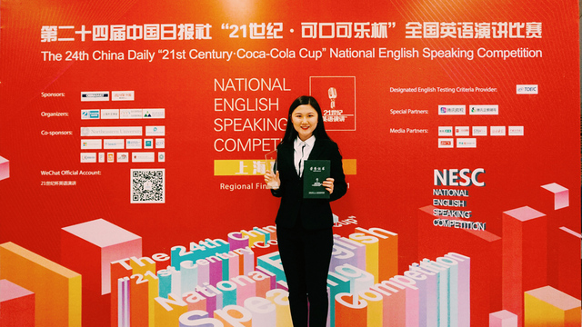 此前,在校园选拔赛中,来自英语学院英语专业2017级的熊歆同学表现突出,获得校园选拔赛特等奖,作为种子选手直接晋级全国赛。