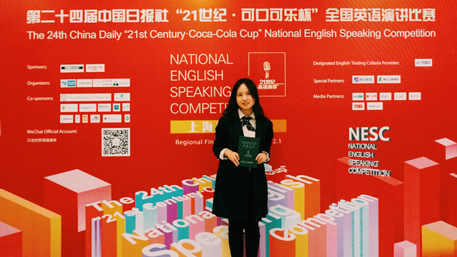12月1日,第24届中国日报社“21世纪·可口可乐杯”英语演讲比赛上海赛区决赛在昆山杜克大学落下帷幕。代表上外出战的四名学子喜获佳绩,英语学院2016级李玉青同学获上海市季军,法语系2017级杨天赐同学获上海市特等奖,英语学院17级陈斯妤同学获上海市二等奖,英语学院18级马晓宇同学获上海市三等奖。上海外国语大学荣获“最佳组织奖”。