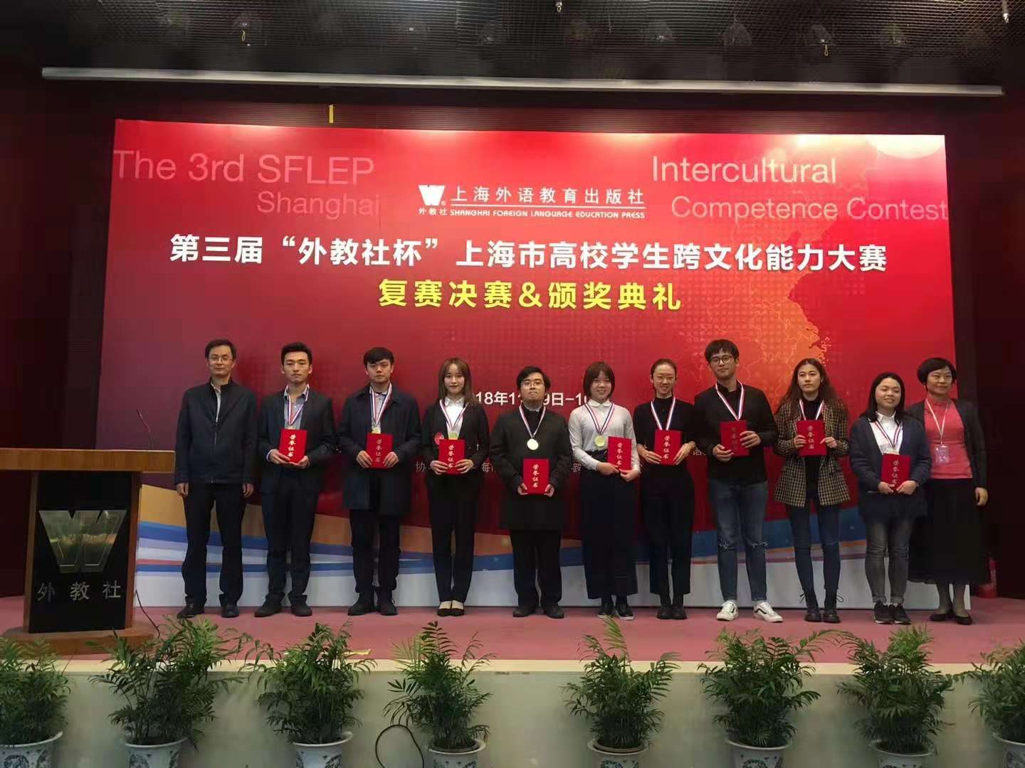 119-10日,由上海市教委指导、上海外国语大学主办、上海外语教育出版社承办、上海外文学会和上外跨文化研究中心协办的第三届“外教社杯”上海高校学生跨文化能力大赛在上海外国语大学成功举办。在邓惟佳老师、孙璐老师的指导下,英语学院2017级熊歆、谢松桥、杨旭东三位同学凭借充分的赛前准备以及在复赛决赛中的优异表现,荣获本次大赛一等奖,邓惟佳老师、孙璐老师获得优秀指导教师奖。
