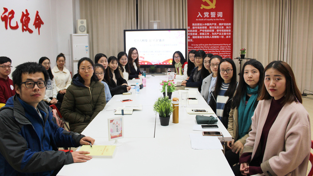 中华文化历史悠久,内容丰富多彩,种种典故承载着中华民族的智慧,充满美的感受。习近平总书记用典是习近平新时代中国特色社会主义思想与中华优秀传统文化的对接与交融,是中国智慧、中国力量、中国风范的当代体现。党日活动现场,党支部书记组织全体党员观看视频《平“语”近人 习总书记用典》第八集:腹有诗书气自华。观看完毕后,支部成员分享了自己查找的习近平用典和相关英文表达,并围绕党员学习的话题展开了讨论。