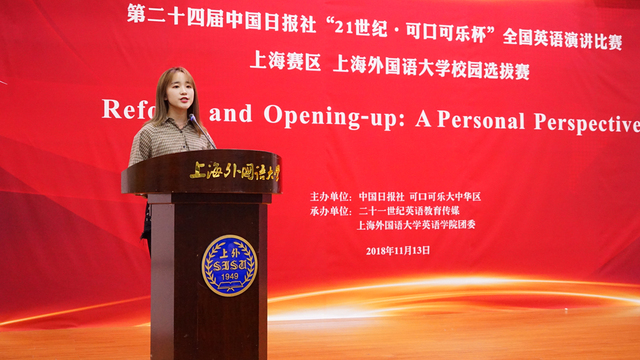 2018年11月13日,第二十四届中国日报社“21世纪·可口可乐杯”全国英语演讲比赛上海外国语大学校园选拔赛圆满落幕。