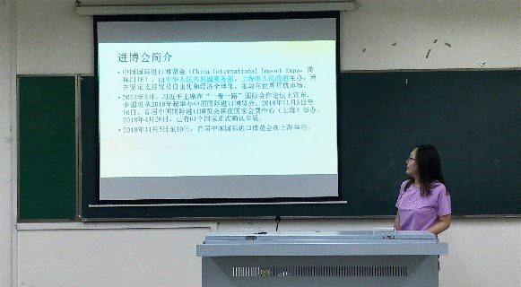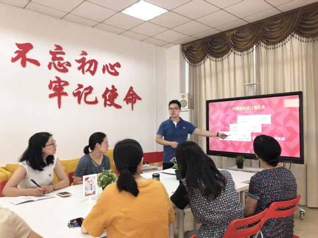 十一月即将到来的首届中国国际进口博览会,是以习近平总书记为核心的党中央做出的一项重大决策,是我国主动开放市场的重大政策宣示和行动。为进一步贯彻中央精神和市委要求,根据市委组织部和校党委组织部工作部署,近日,英语学院各党支部结合专业实际,通过多样的形式,开展了“进博先锋·党员行动”主题党日活动。