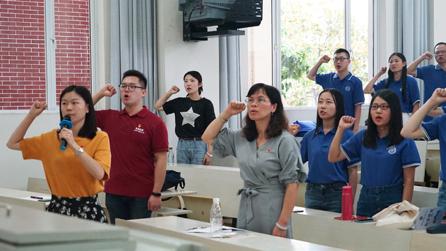 杨老师希望在座的党员同学,不要忘记自己兼具学生和党员的双重身份,时时处处以更高的标准严格要求自己,把准航向,坚定信念,全情以赴,在英华党员大家庭里一起续写人生新篇章!