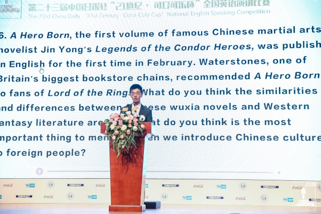 全国总决赛包括已备演讲、即席演讲和现场提问三个环节。熊子卿同学围绕“新时代:中国与世界”这一主题,分享了三代上外学子的时代故事;通过自身专业视角,对“中国武侠小说与西方虚构文学之异同比较”做了自己的见解,并接受了评委提问。凭借与众不同的上外故事、扎实的功底、稳健的表现与独特的幽默感,熊子卿同学得到了在座评委与观众的一致认可,摘得季军与“最具创意奖”。