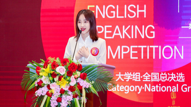在总决赛中,熊歆同学在“A Glimpse into the Future”这一主题下独树一帜,讲述了自己的个人故事,用真切的情感和幽默的语言感染了在场的观众和评委,引得全场阵阵掌声,展现了上外学子的风采!