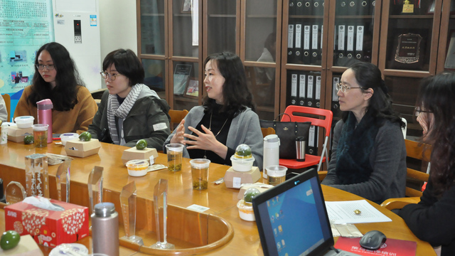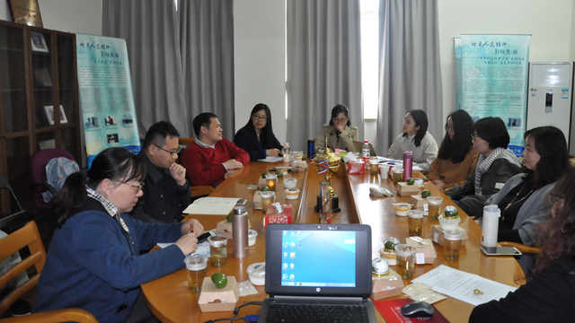 活动在轻松愉快的氛围中开始。首先,王欣老师以“人文化英语教育与跨文化深耕能力培养”为主题,阐释了人文化教学理念之下的人才培养,学生通过联想思维习惯的培养,建构自主学习的动力,在跨文化交际能力提升的同时,不断提高跨文化深耕能力,实现自我的可持续成长。王老师以诗歌教学为例,谈到了课堂教学中如何实现教材的调整与丰富,以及如何在教学中实现启发、对话、联想的教育方法。查明建老师首先介绍了全国英语专业的现状和各大学英语专业纷纷进行改革探索的趋势,谈学院如何在八年来人文化改革的基础上,再进一步深化专业教育改革。目前,学院正在创建“英语专业人文社科研究型人才培养实验班”,查老师介绍了创建“人文实验班”的初衷、目标和实施方案,希望以“人文实验班”作为专业拔尖创新人才培养的探讨平台,加大专业改革的力度,探索高端化、精英化、专业化人才的培养机制,及时总结经验,向全院推广。通过实验班的创新模式和标杆作用,整体提升学院人才培养的水平,打造一流本科,并由此促进研究生教育改革,实现由偶然到必然、由个体到群体的高端专业人才涌现。