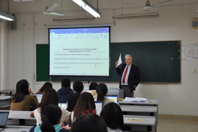 被问起应该如何介绍他,Curtis谦逊地表示自己仍是一个还在学习如何翻译、学习中国历史与文化的“学生”。毕业于美国哈佛大学历史系的Curtis拥有着深厚的汉学功底,在英语学院开设了多门翻译、写作和文化课程,同时也是学院承接的《习近平用典》(第一辑)英译项目的译审。