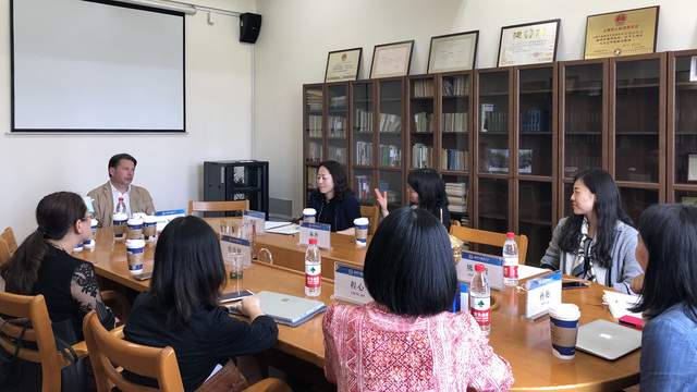 20日中午,Halliwell与英语学院老师就美国研究的相关领域进行了一场学术座谈。英语学院的李梅、林玲、程心、蔡佳颖、孙艳、孙麟和熊颖哲几位老师分别介绍了自己与英美文化领域相关的研究兴趣。几位老师向Halliwell教授介绍了英语学院的文化研究沙龙,并提出组织美国研究领域工作坊的设想,届时可邀请莱斯特大学的学者参与,加强学术互通,增进彼此交流。