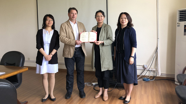 5月20日,英国莱斯特大学人文艺术学院院长Martin Halliwell教授到访了我校松江校区。 Martin Halliwell教授是一位年轻有为的美国研究专家,在该领域研究成果丰富并具有广泛的影响力。Halliwell教授担任我校客座教授期间每年率团队定期来访,他本人及随行著名教授为我校英语专业本科生和研究生开设了精彩的学术讲座,广受好评。此外,他也为推进上外与莱斯特大学之间的学生交流项目做出了很大贡献,促成了两校本科生海外交流交换项目、本科生“2+2”双学士项目、硕士生双学位项目以及上外“中国文化暑期项目”的顺利实施。在此过程中,莱斯特大学成为上外的重要海外合作伙伴。