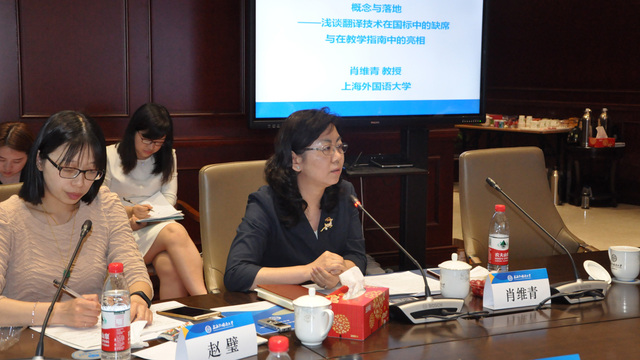在下午的发言中,围绕着人工智能与翻译教师、课程设置、机器翻译与人工翻译等主题,发言者们畅所欲言,精彩纷呈。澳门大学的李德凤教授、上海外国语大学的韩子满教授分别就“人工智能、翻译技术与翻译教师能力培养”“人工智能时代翻译教师的职业化”两个话题,结合各自的教学经验,指出高校翻译教师加强自身技术素养的重要性,得到了专家们的热烈响应。山东师范大学的徐彬副教授的“翻译领域的破坏性创新与译者的生态适应”话题,从概念定义到举例论证,对翻译产业中出现的破坏性创新提出积极的应对策略。上海外国语大学的赵璧老师围绕“从翻译专业本科生的译后编辑能力看翻译专业课程设置”这个主题,提出了上外英语学院在翻译专业本科课程设置方面的诸多创新。对此,刘和平教授和穆雷教授都给予了肯定并提出了宝贵的意见与建议。瑞科翻译有限公司的总经理左仁君和中国外文局教育培训中心翻译部主任林凡林分别以“翻译公司目前利用机器翻译的情景分析”和“人工智能时代人工翻译之变”为题进行了精彩的演讲,从社会和职业角度对翻译技术的发展与融合提出了专业看法。随后,来自西交利物浦大学的张霄军博士以“人工智能伦理与翻译技术发展”为题分享了他最新的研究成果,引起了与会专家们的兴趣和思考。最后,上海外国语大学的肖维青教授以“概念与落地——浅谈翻译技术在国标中的缺席与在教学指南中的亮相”为题进行大会发言,并对整场大会发言进行总结。