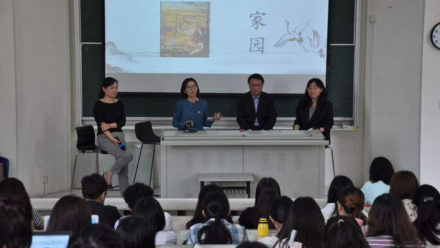 2019年5月27日上午,英语学院《英美概况》课程团队杨维嘉、孙麟、忻华、张新彬四位教师共同上了一堂别开生面的《英美概况》课程思政创新英语公开课。作为2019年上外春季学期“课程思政”系列公开课之一,本公开课在教学形式和方法上锐意创新,采用国际学术会议公共讨论形式,四位教师联袂主讲,建立“师师、师生、生生”三维讨论空间。